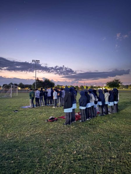 Students shuffle in tiredly at six in the morning, long before the sun rises, holding coffees, pastries, cameras, and prayer mats. Slowly, they line up for the congregation on the soccer field to pray a memorable Fajr salah. Class President Alaa Tegeldin was one of the students who could be seen setting up activities and tables. When asked what her favorite part of the sunrise was, she replied, “Just seeing everyone happy eating, taking pictures together, and having fun!”